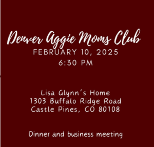 We are so glad you are visiting our online home! Do you live in the Denver area? We have members from all over the Denver metro and Fort Collins area. Joining our club is an excellent way to become familiar with Texas A&M University and to support your Aggie student. It is also a place to form lasting friendships! We hope you will join us this year. Our meetings are scheduled monthly on the second Tuesday of the month from September to May. For specific dates, see our Meeting Information page. To obtain membership information, email us at Denveraggiemoms@aggiemoms.org .